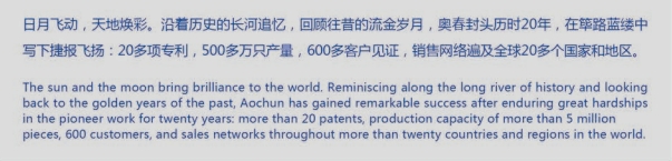奧春注重人才的培養(yǎng)和企業(yè)文化的建設(shè)。以客戶為中心、保障股東權(quán)益、與員工共成長、積極回饋社會,努力打造一個(gè)充滿活力、責(zé)任感和凝聚力的企業(yè)。